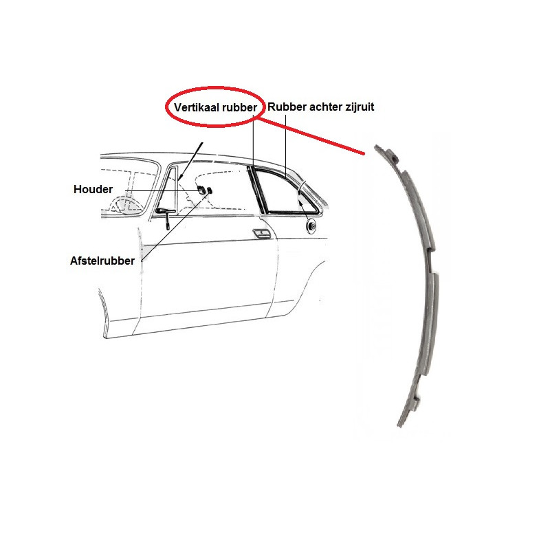 Het vertikale rubber voor zijruit van de Bertone