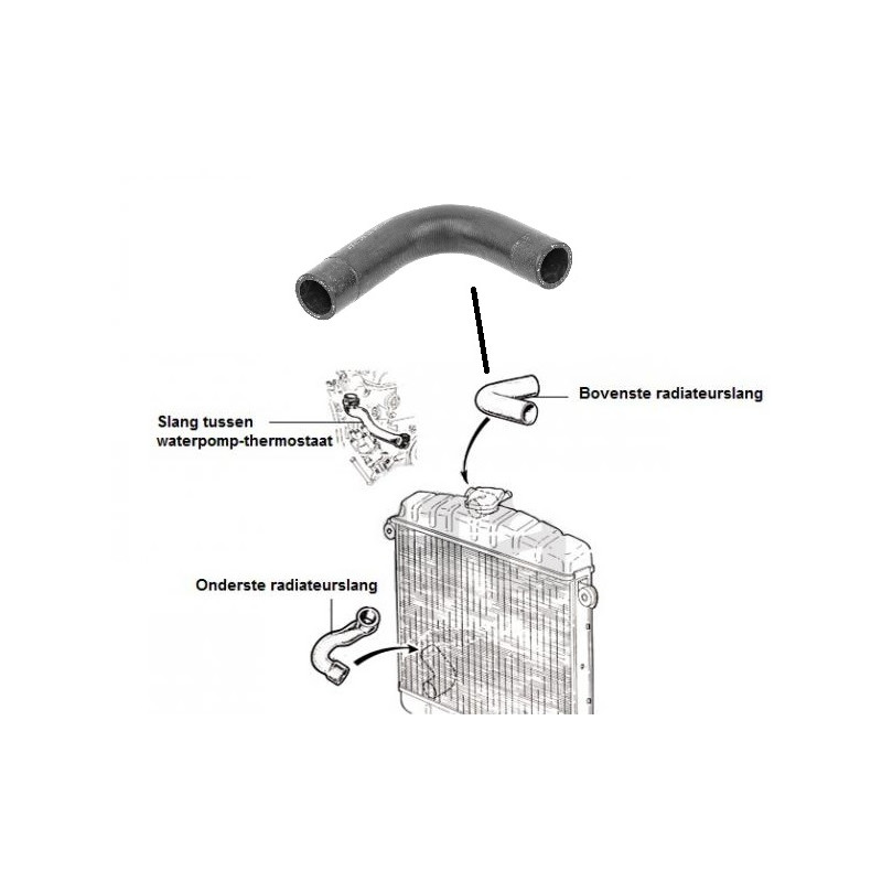 De bovenste radiateurslang voor alle 1300/1600/1750/2000 Nord motoren tussen 1968-1988