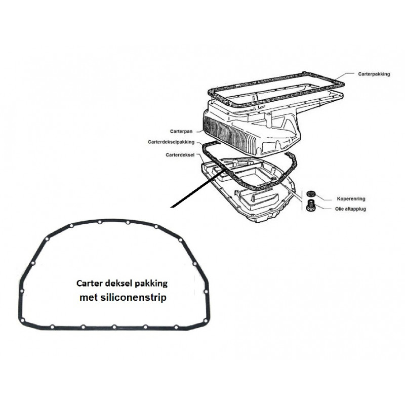 Een carterdeksel pakking (Breed carter) met siliconen plakstrip op beide zijde.
