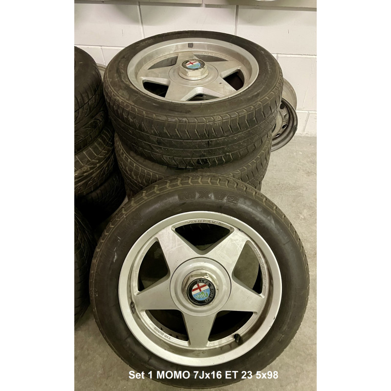 Een set MOMO velgen 7Jx16 ET23 5x98 (banden Michelin maar op)
